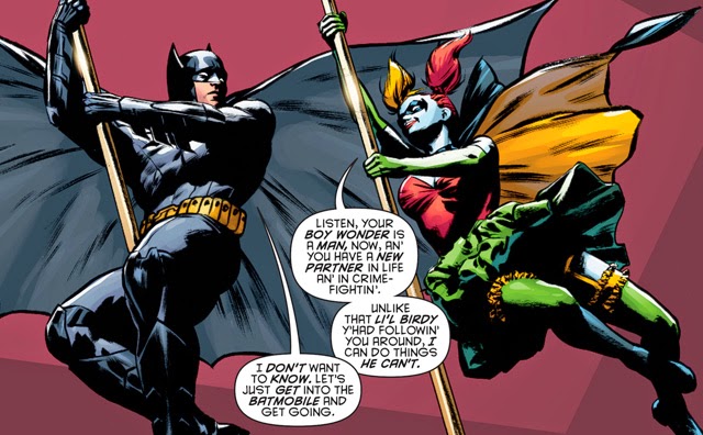 I must confess that books centered on Harley Quinn are now among the ones that I most look forward to reading. That’s probably something I wouldn’t have said two years ago, which shows you how great of a job Amanda Conner and Jimmy Palmiotti have done with this character. Not only have they succeeded in crafting pitch perfect dialogue for the Clown Princess of Crime, they continue to add to her ever growing supporting cast, which can sustain its own corner of the DC Universe without Batman having to get involved, although he does actually show up in this volume.