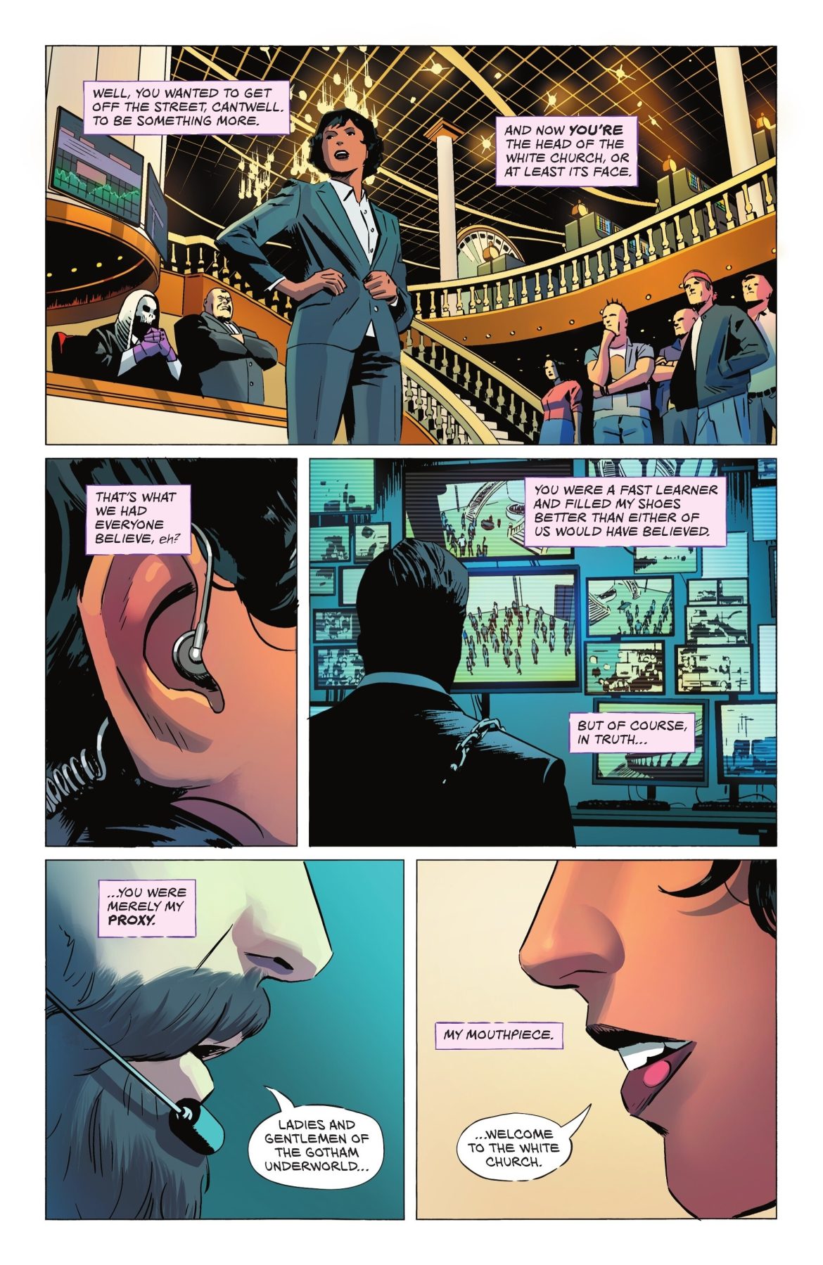 After the events of Two-Face #4, we rejoin Harvey as he is in hiding. Lake has taken over his visual role in The White Church ensuring justice has been happening the last few months. But if there is anything Harvey has been ruminating on it is this. How can a man be half good if all he does is bad? It is a mantra he goes over again and again as he watches from afar the goings on of court. Lake brings his justice to the courtroom but he still hasn’t figured out the whole scope of the nightly activities of his other half.
