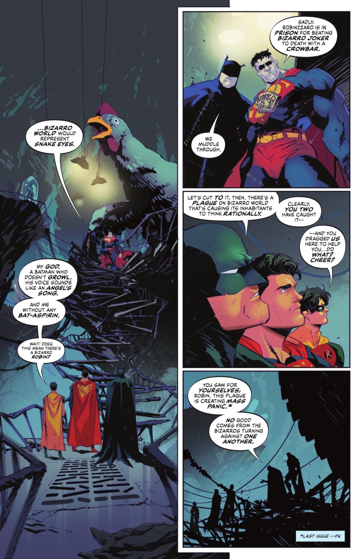 Hello World’s Worst Detective. We continue our adventure into Bizzaro land in Mark Waid’s “Bizarro World Tour Part Two.” The World’s Finest family meet up with Bizarro and Bizarro Batman. Batman/Superman: World’s Finest #42 is filled with humor, I let out a few laughs after the first few pages.