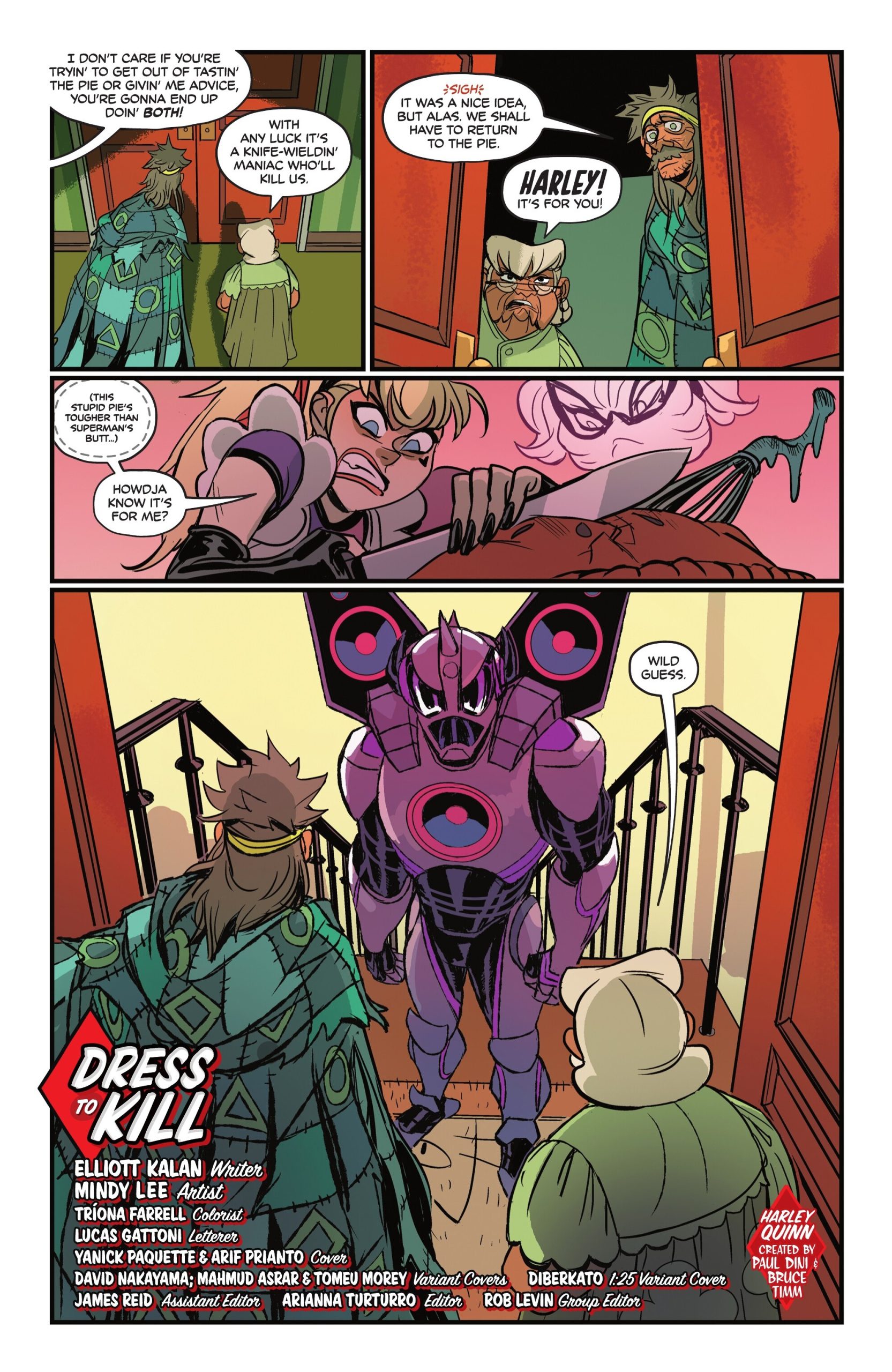 Harley Quinn #53 has quite a few stories happening as it unfolds. Instead of seeing a date unfold, instead we see power armored misguided broken hearts getting some closure, several reasons why reading the instructions and anything we may sign is imperative. But the biggest surprise is the plot that evolves outside of Althea’s attempts to thwart her traitor’s heart.