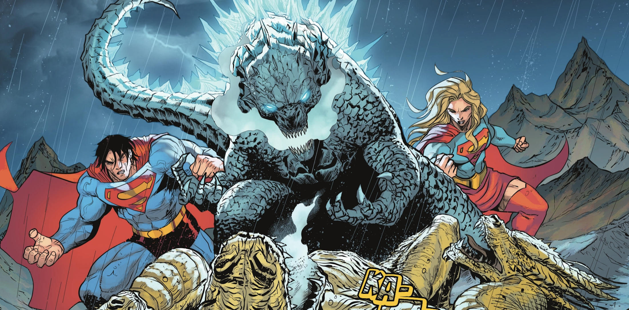 Christian Duce is the perfect choice for this project. His dynamic style captures both the iconic likenesses of the DC heroes and the awe-inspiring scale of the Titans. His action sequences are explosive, making every punch from Kong and every blast from Godzilla feel impactful. It pulls you into this world that despite its insanity, looks alluring. In combination with Guerrero’s inks give Duce’s pencils a tremendous sense of weight and depth, crucial for a book featuring gigantic monsters. The heavy shadows and strong linework help define the massive forms of Godzilla and Kong, making them feel like tangible, three-dimensional creatures within the chaotic battlefields.